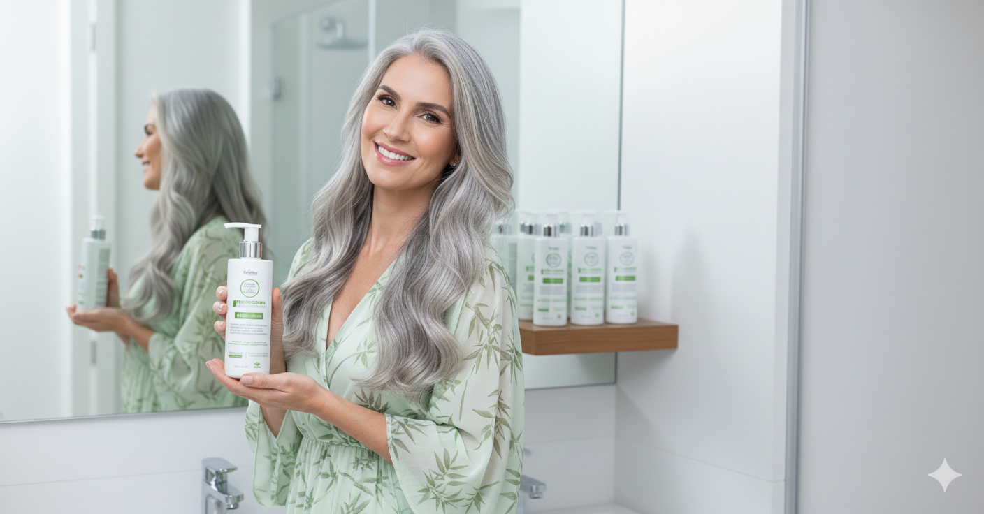 Com produtos pensados exclusivamente para cabelos grisalhos — como a máscara de reconstrução, shampoos hidratantes e leave-ins protetores da Loja da Bambbu — essa rotina é completa, eficaz e alinhada às necessidades específicas dos seus fios.